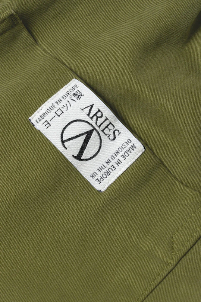 The Aries Mini Problemo Work Pant in Olive is a unique and relaxed garment that combines style and comfort effortlessly. With its wide-cut design, these pants offer a relaxed and laid-back fit, perfect for those who prioritize comfort without compromising on style. Crafted from 100% cotton, these pants provide breathability and a soft touch against the skin.