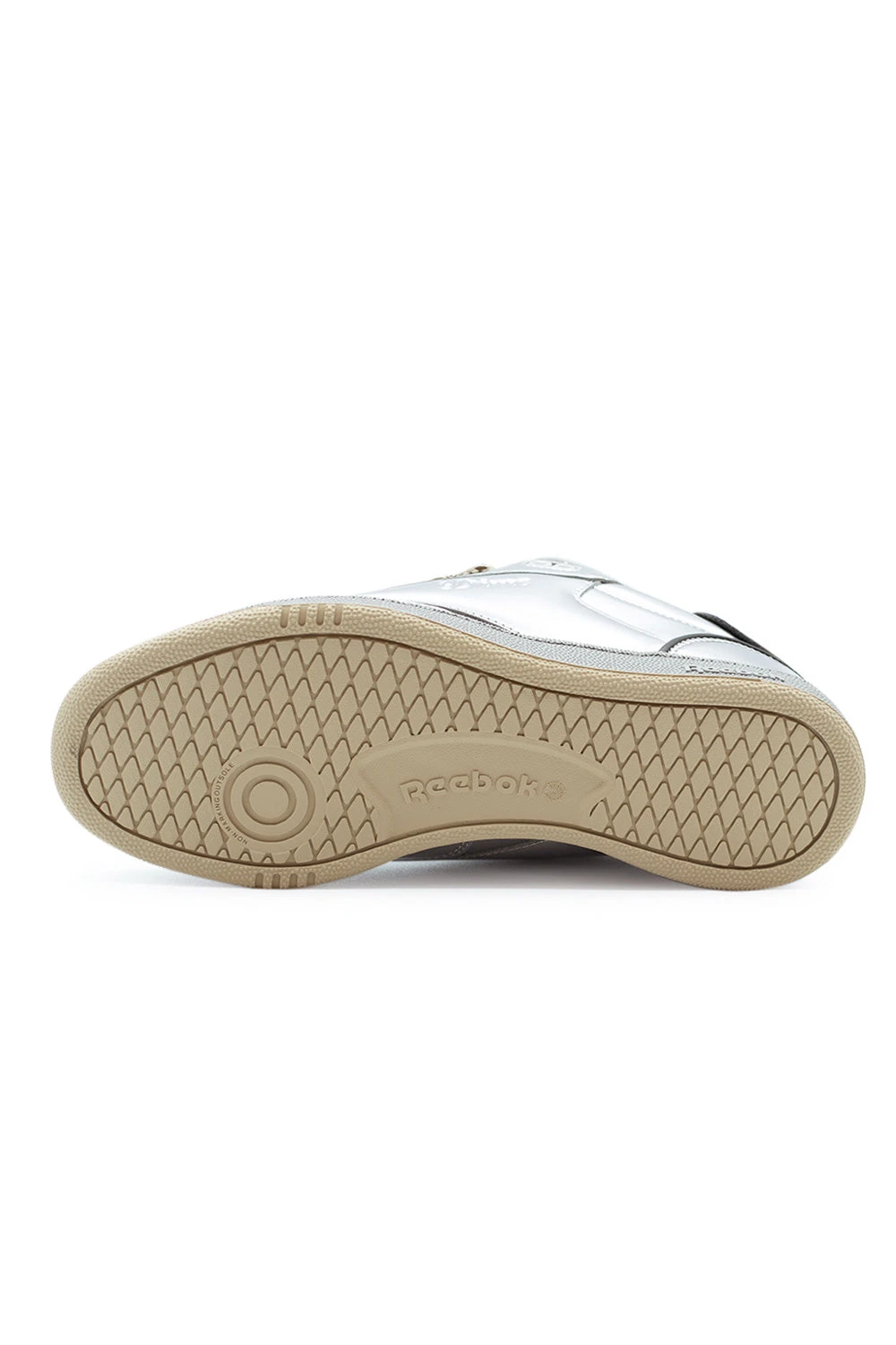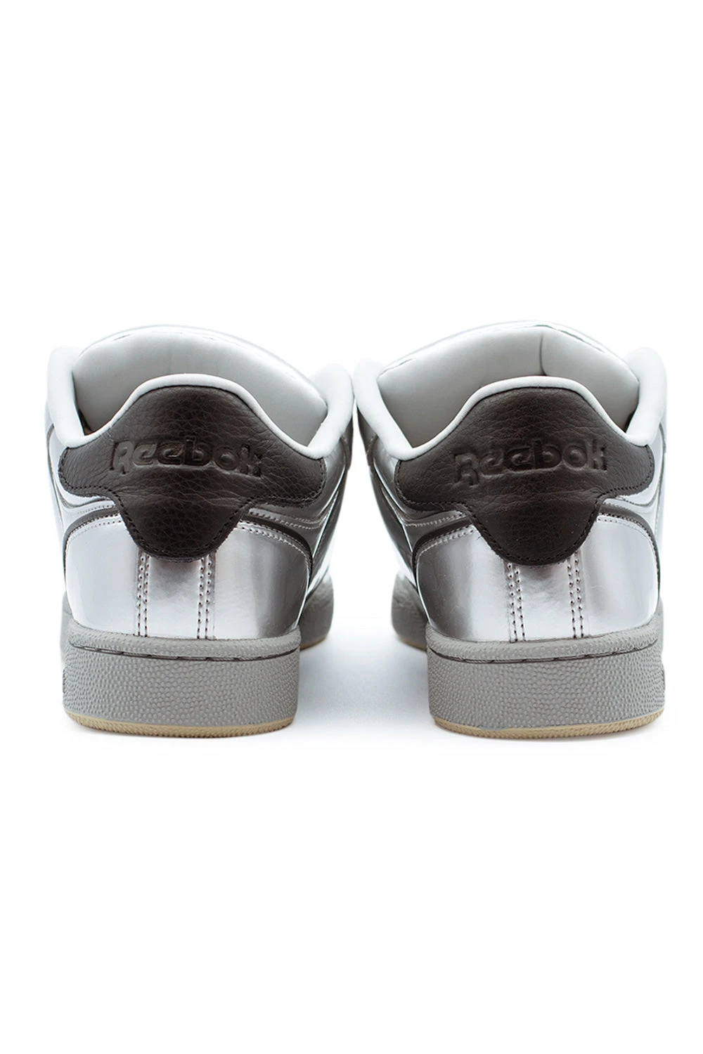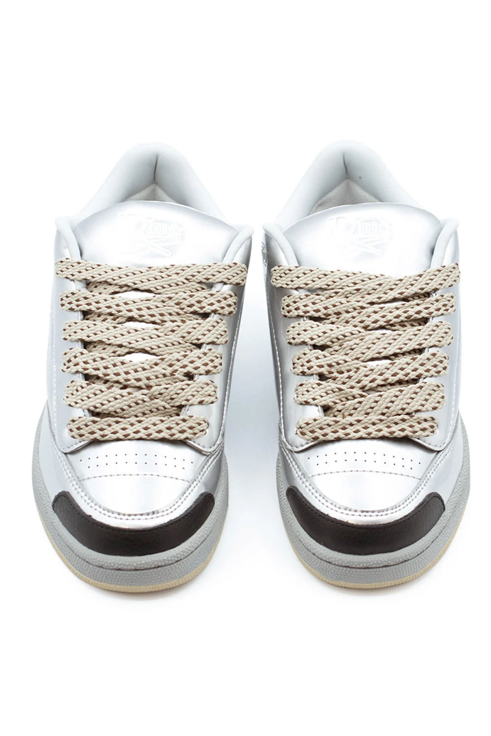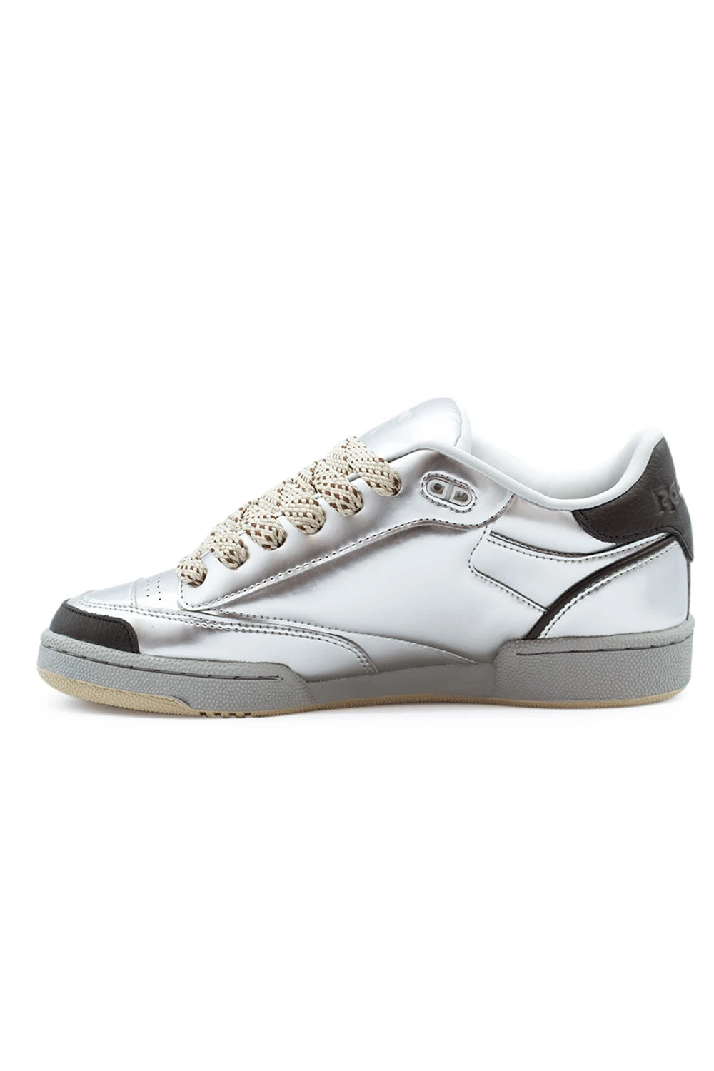 – Shiny silver synthetic upper