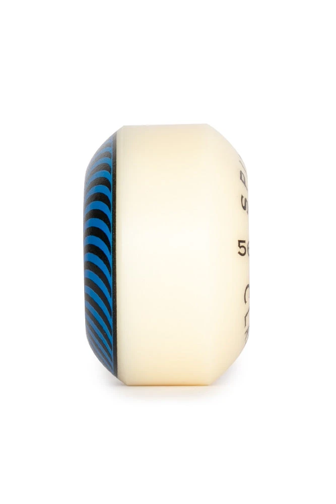Moving on to the specifications, the Spitfire Formula Four Classics Blue Wheels have a height of 56mm, providing a perfect balance between stability and maneuverability. With a 17.8mm contact patch, these wheels feature the narrowest riding surface among all Spitfire wheels. This narrow contact patch ensures optimal control during tricks and maneuvers, enhancing overall performance. The 35.3mm width strikes a harmonious balance between stability and responsiveness, catering to various skateboarding styles.